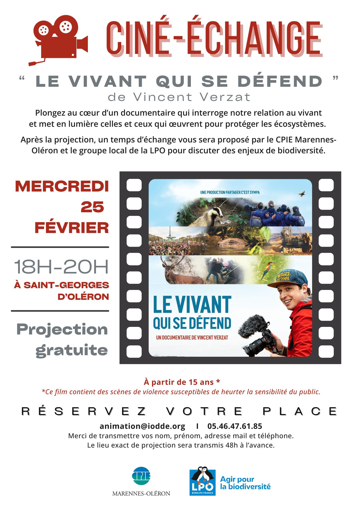 Après la projection, un temps d’échange vous sera proposé pour discuter des enjeux de biodiversité, comprendre les actions menées sur notre territoire et imaginer ensemble comment mieux préserver le vivant.